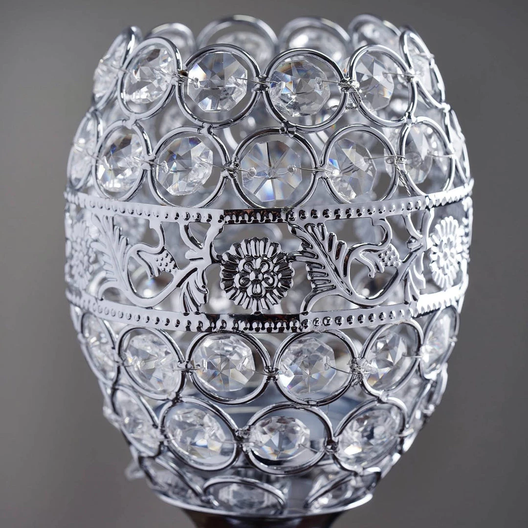 Fill your party space with oodles of shimmer and glimmer, decorate your ambiance with glitz and glam that is fit for the royalty. Feel like a crystal princess, exuding regal sheen all around with amazing sparkling crystal beaded chandeliers adorning your party tables, oozing heaps of imperial radiance all around. Our splendid crystal chandeliers are ornamented with multitudes of glimmering crystal beads that emanate surreal luminosity, while stunning metal ring adorning the center has amazing vine accents that look absolutely breathtaking. This beaded crystal embellished chandelier is an ideal decorative accent to enliven any party space with its unsurpassed shine and peerless elegance!
