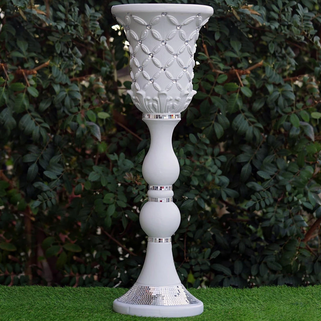 Relive the French reminiscence of architectural splendidness and grandeur by decorating your home or party space with our inspiring selection of Contemporary style decorative French Columns, Flower Pots, and Flower Stands and Pillars. Made from high quality PVC material, these classy Columns will bring the glorious touch of 19th Century French architecture into your special events, imparting a Grand imperial touch to your decorations. Studded with shimmering crystal beads and mesmeric mosaic mirrors, these columns will reflect surreal light, creating an absolutely bedazzling spectacle of festive luminosity. Use these splendid flower pot columns to display a whimsical harmony of beauty and color by adorning with fresh seasonal flowers and bushes, or create perpetual blooming display of artificial flowers, stems, bushes, leaves, and bouquets. Place these Flower Stands by your passage way or stage side, reminding of the glorious past, while colorful flowers and plants contrast with them, bringing an innovation of the present time.