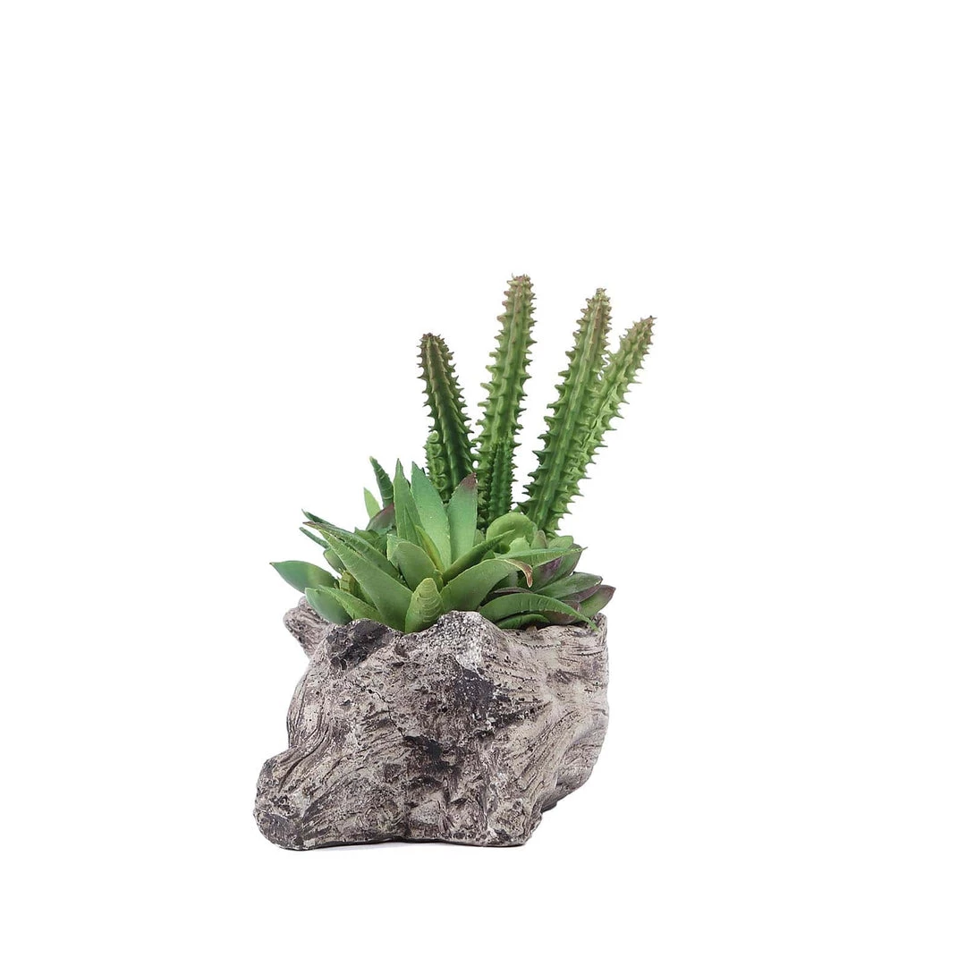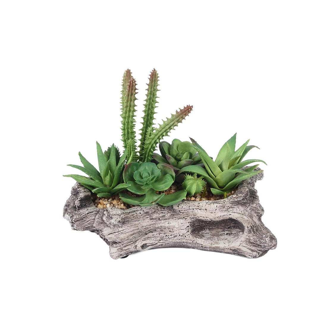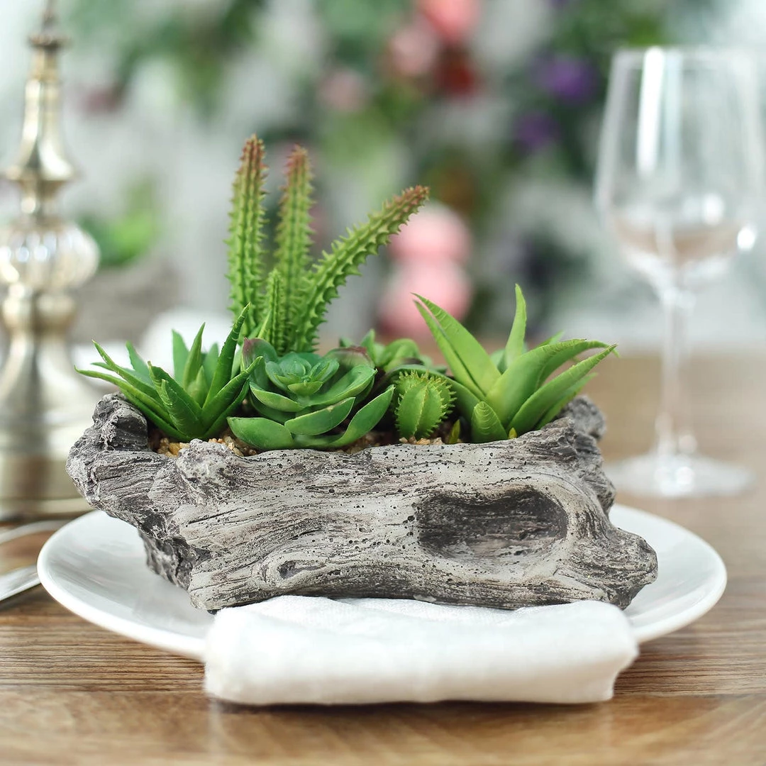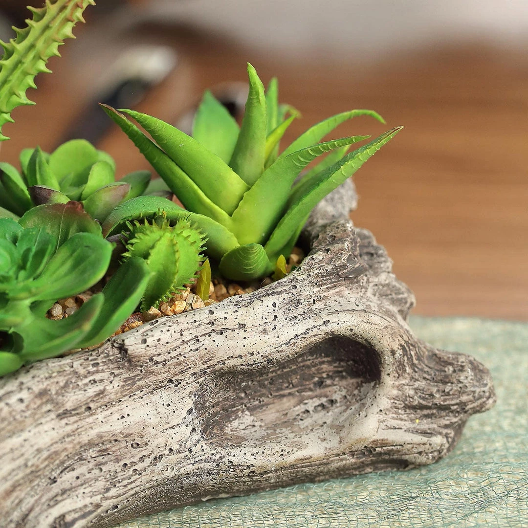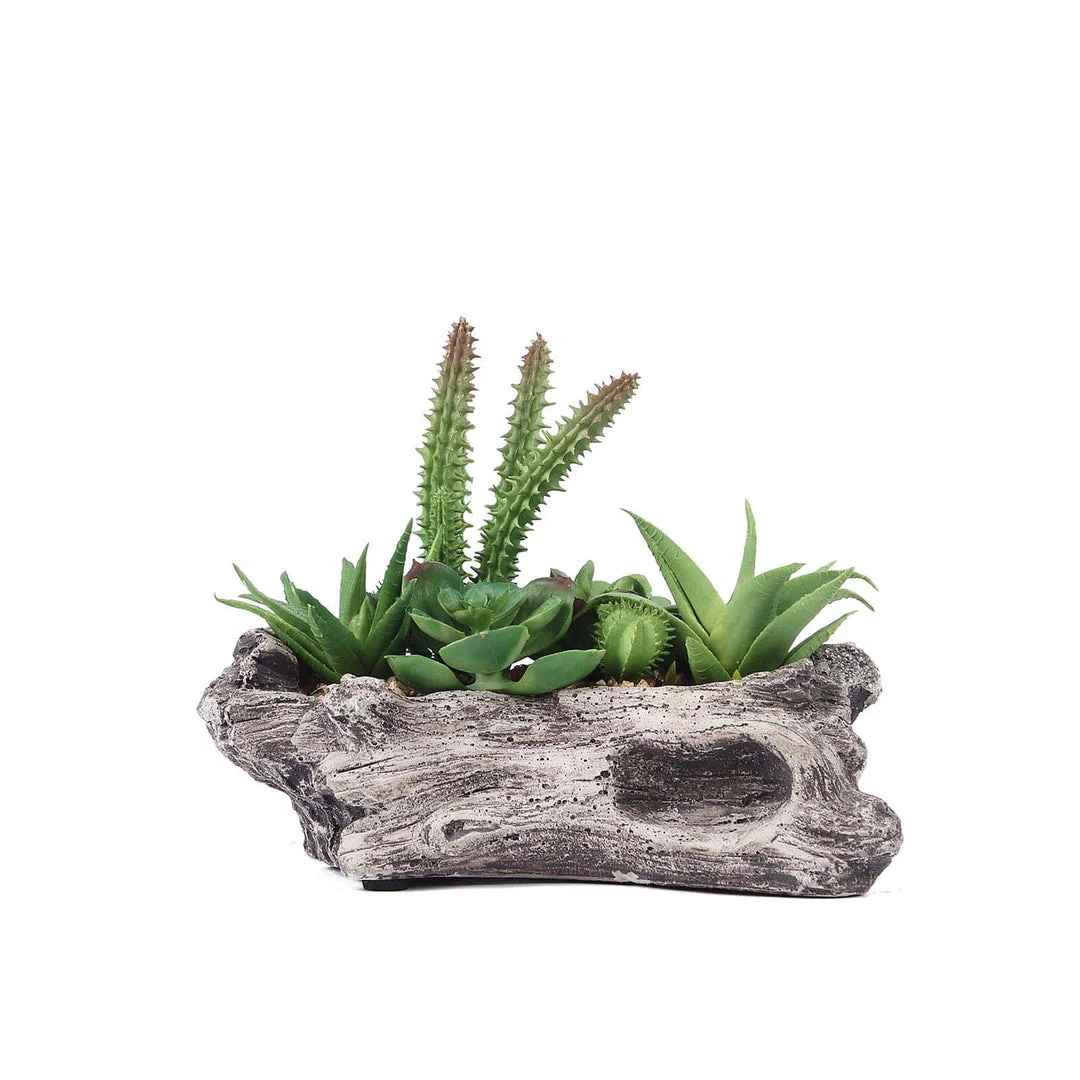 | Inclusions: Log Planter with 15 Artificial Succulents |