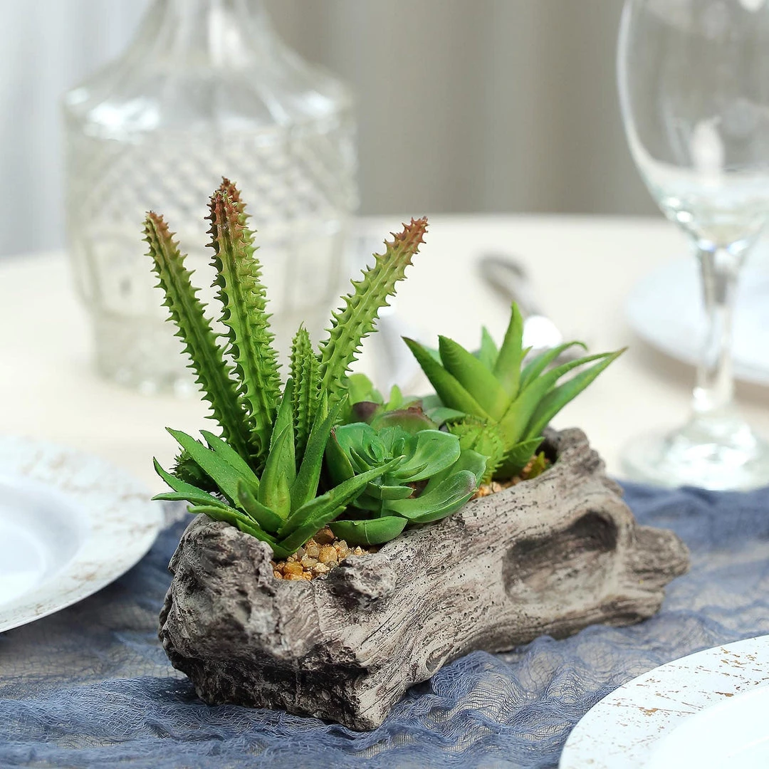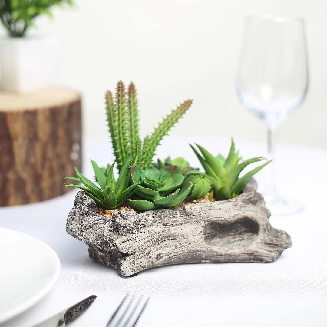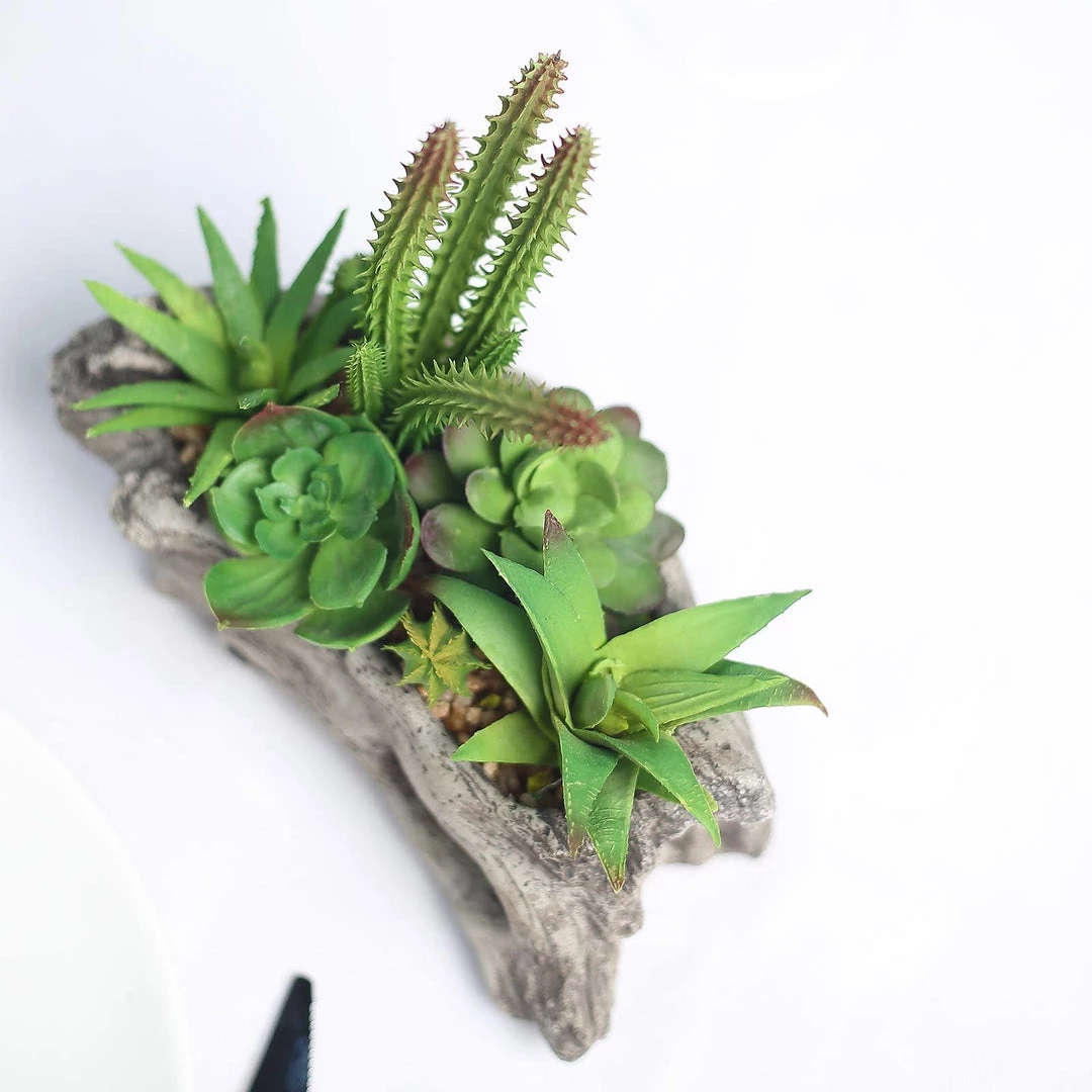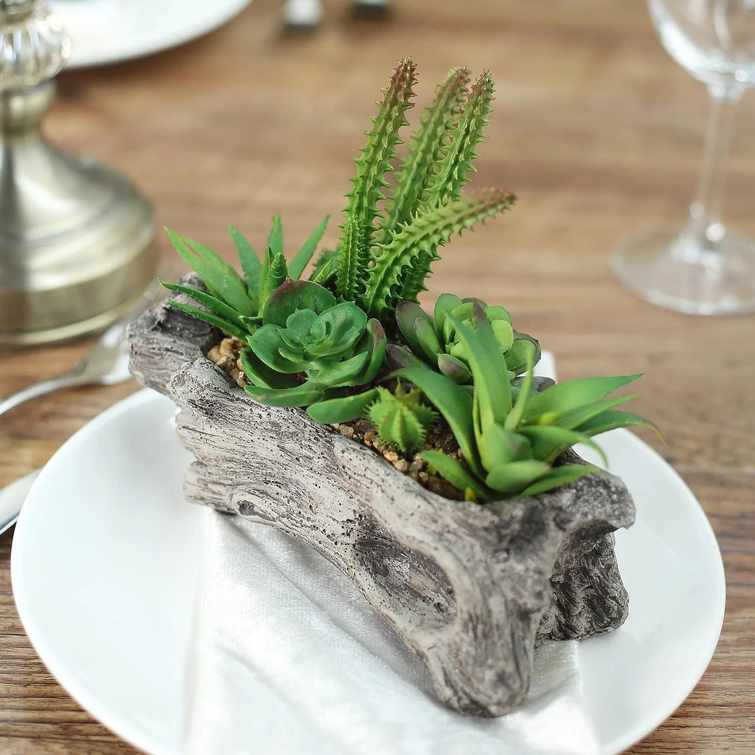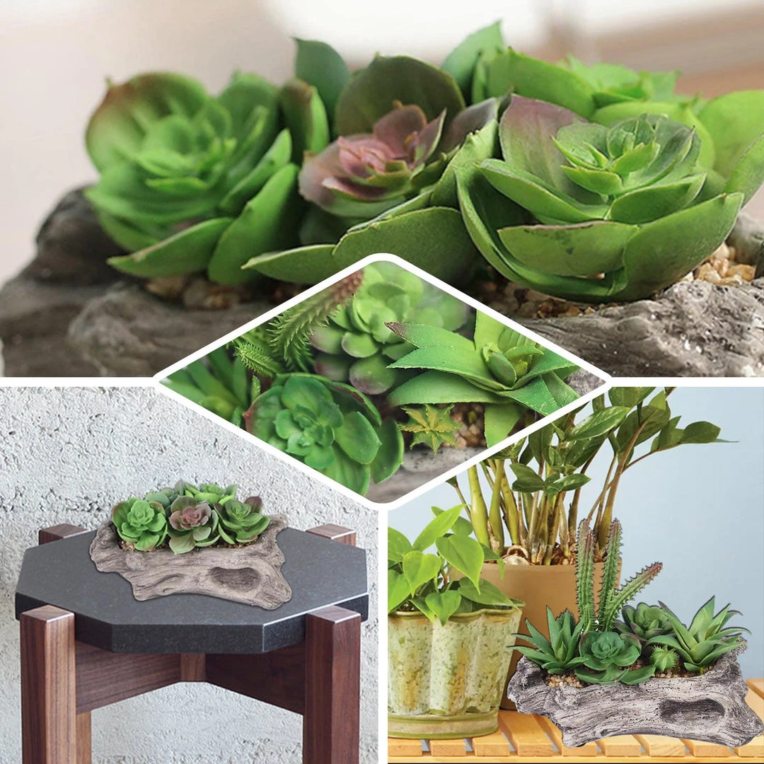 | Inclusions: Log Planter with 15 Artificial Succulents |
