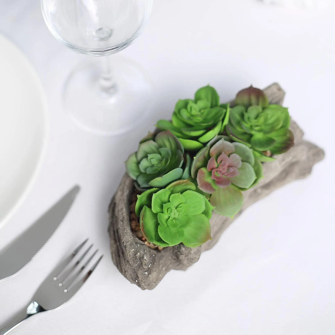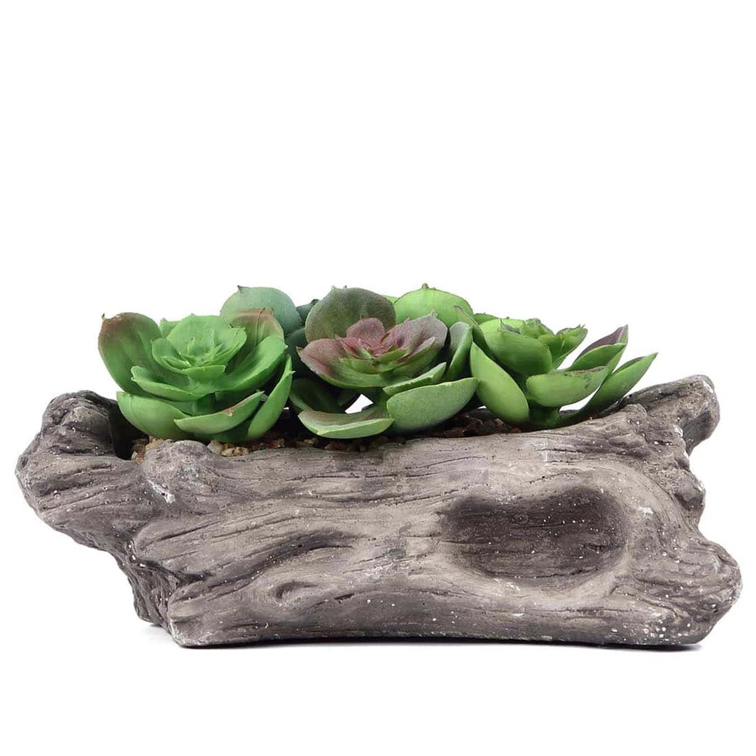 | Inclusions: Log Planter with 5 Artificial Succulents |