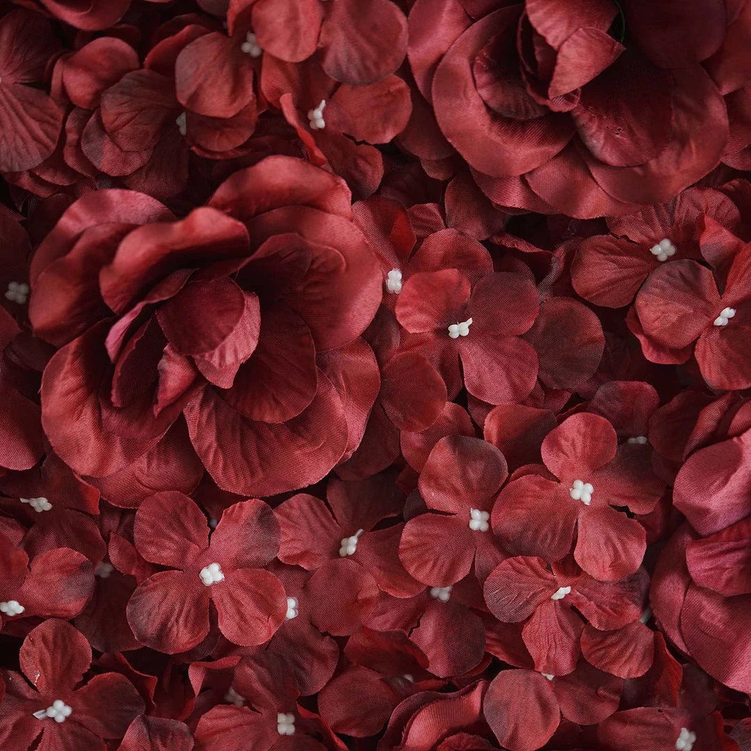- Color: Burgundy Roses and Burgundy Hydrangea