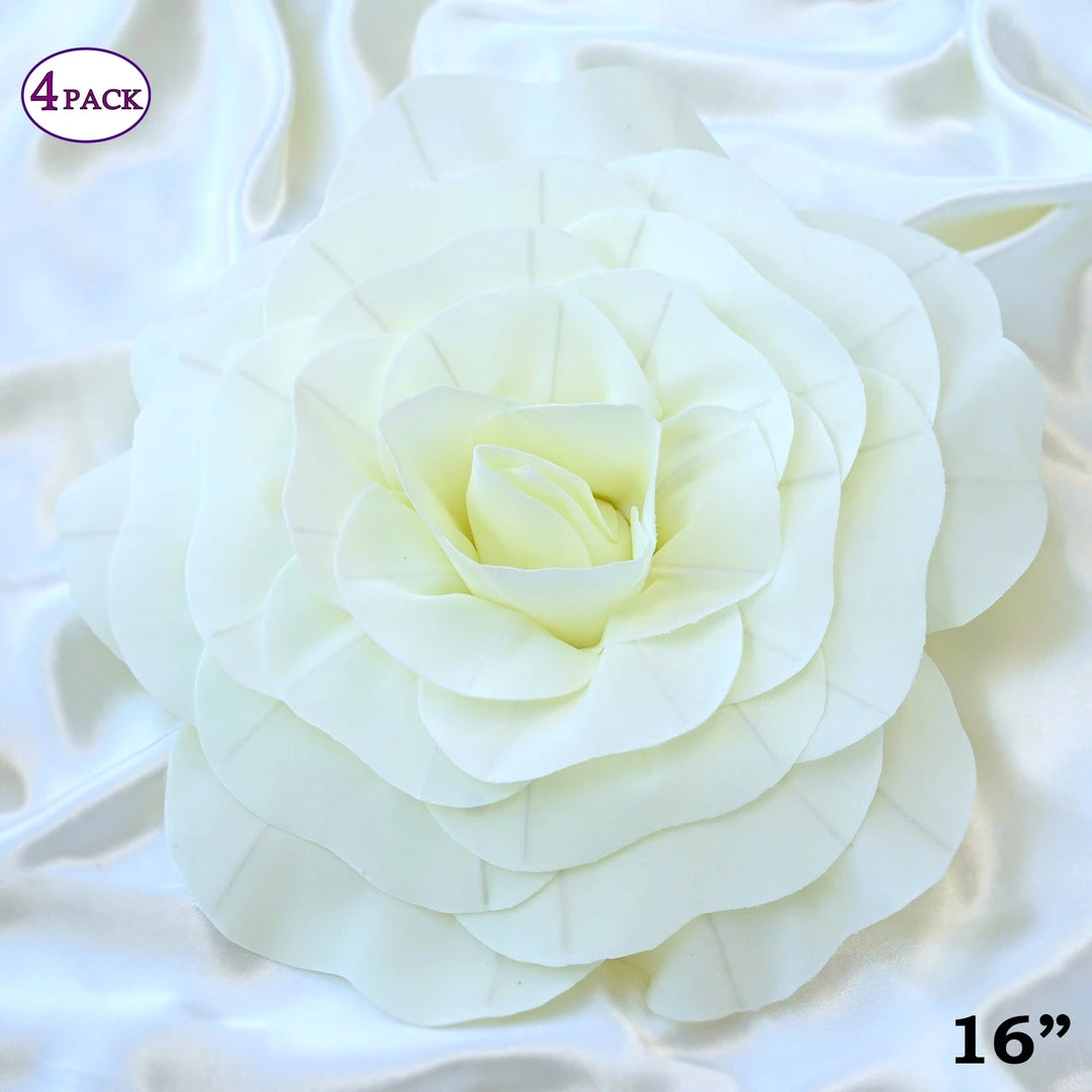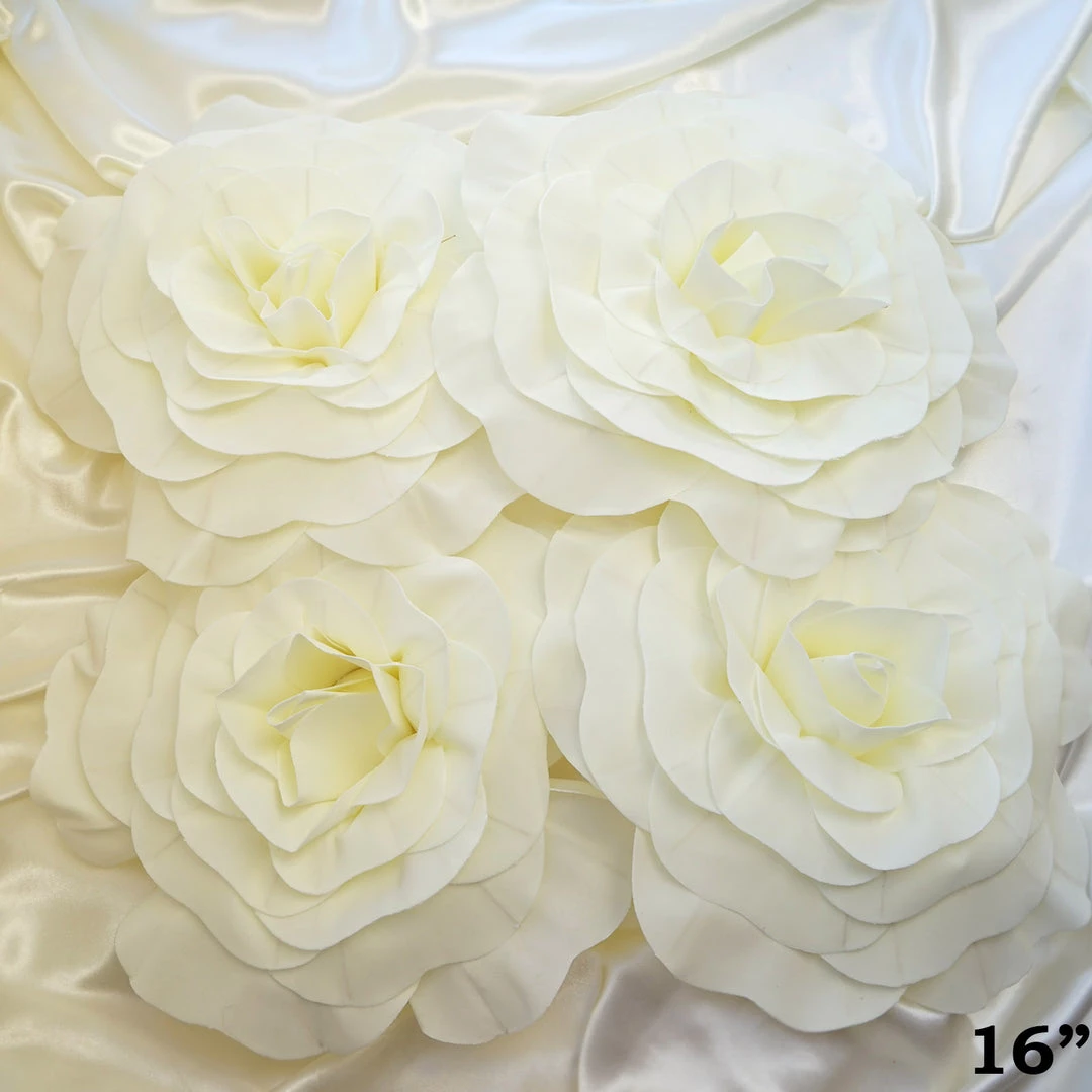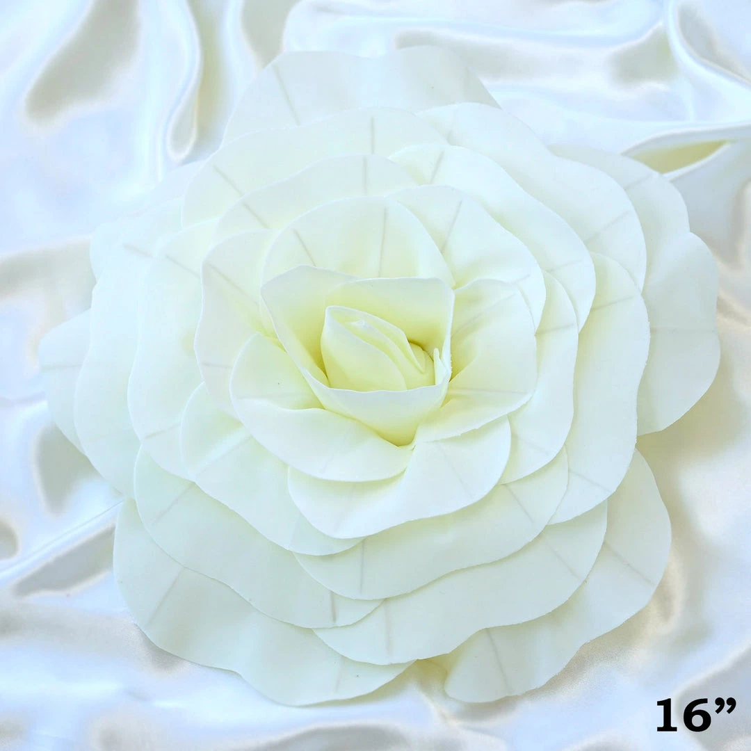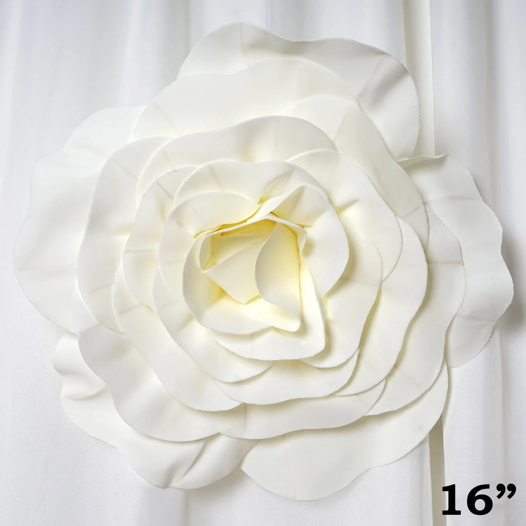 These large foam flowers are intricately handcrafted by artisans to achieve the appearance of natural flowers. Made from sumptuous foam, our NEW giant foam artificial flowers are realistically shaped and wonderful to the touch. Transform your dull and lackluster home space or party ambiance into a divine paradise of magical flowers by draping your event from floor to ceiling with these life-like foam flowers. Gorgeously hand rolled petals have such realistic finishing details that they will surely leave your guests and invitees wonderstruck at their bigger and bolder beauty. Let your imaginations and creativity run wild, design and decorate like a professional florist with these brilliant blossoms. Create a lovely flower backdrop elevating your gathering to the ultimate grandeur, make a floriated photo backdrop with multi-sized and multi-colored foam flowers, make an impressive statement with a single giant flower being held by the bride, bridesmaids, or maid of honor, use as a fun and affordable alternative to fresh flower arrangement centerpieces, create a jaw dropping entrance or passage by accenting your staircase or wedding aisle with dozens of blooming foam flowers, make an exquisite table runner with these 3-D flowers , forget chair covers when you have a huge 3 dimensional flower chair accent, so pretty!….