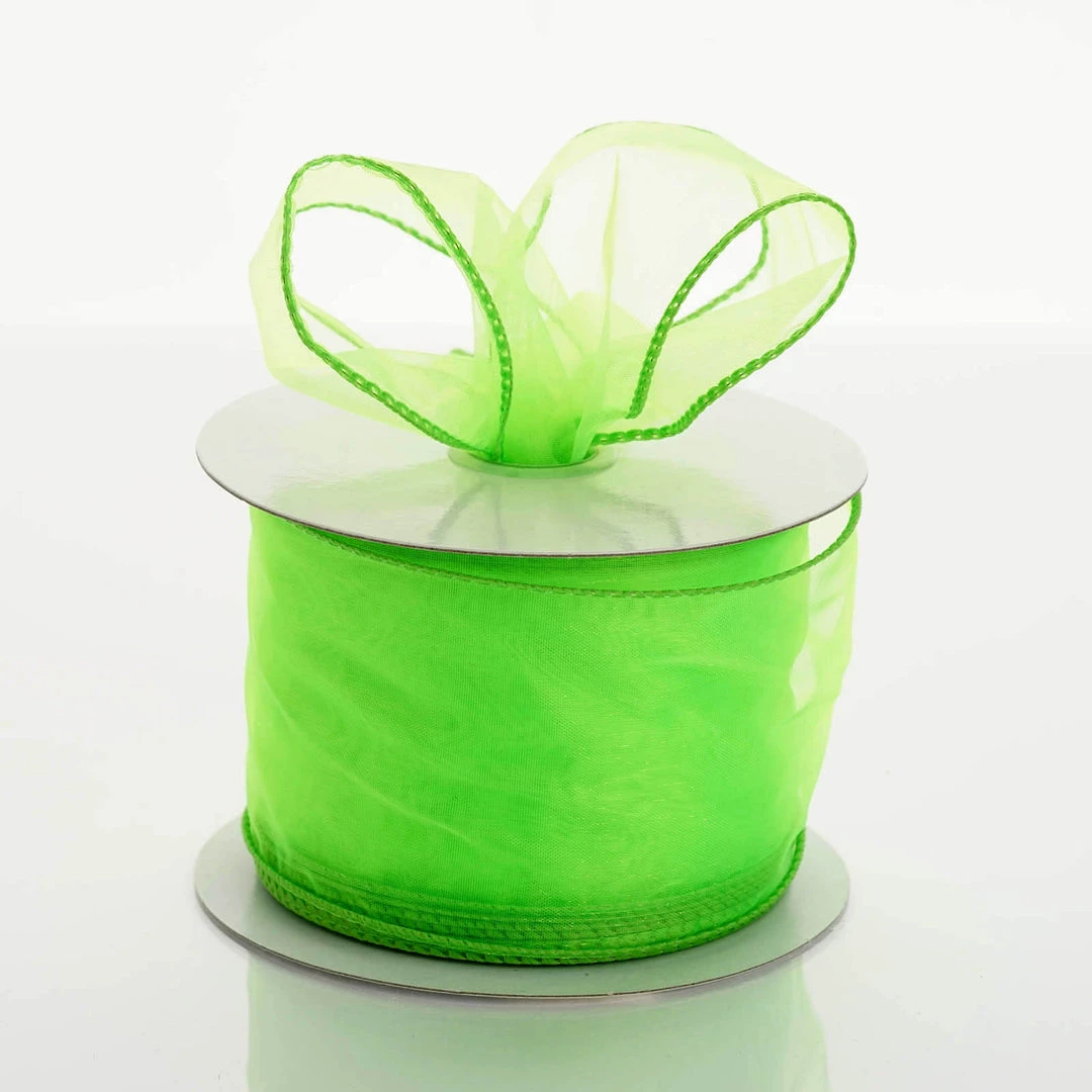 Silkflowersfactory 2.5″ X 10 Yards Organza Ribbon With Wired Edge – Apple Green