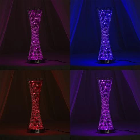 A real statement piece, this classy curved LED lamp features light bulbs which change into four different colors; red, purple, fuchsia, and blue. Bring a touch of modern style and surreal elegance to your home or party place with this stunning Spiral Color Changing Light Lamp. Create a mesmeric display of festive colors and radiant lights with this masterpiece. Shaped in voguish curved shape and crafted from premium quality metal with glamorous color changing LED bulbs, this charming lamp will add modern flair and a visual element to your party ambiance.