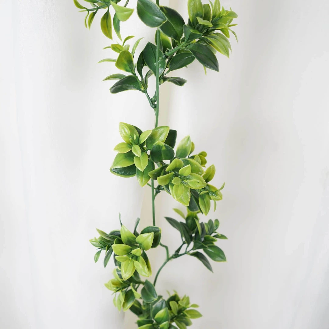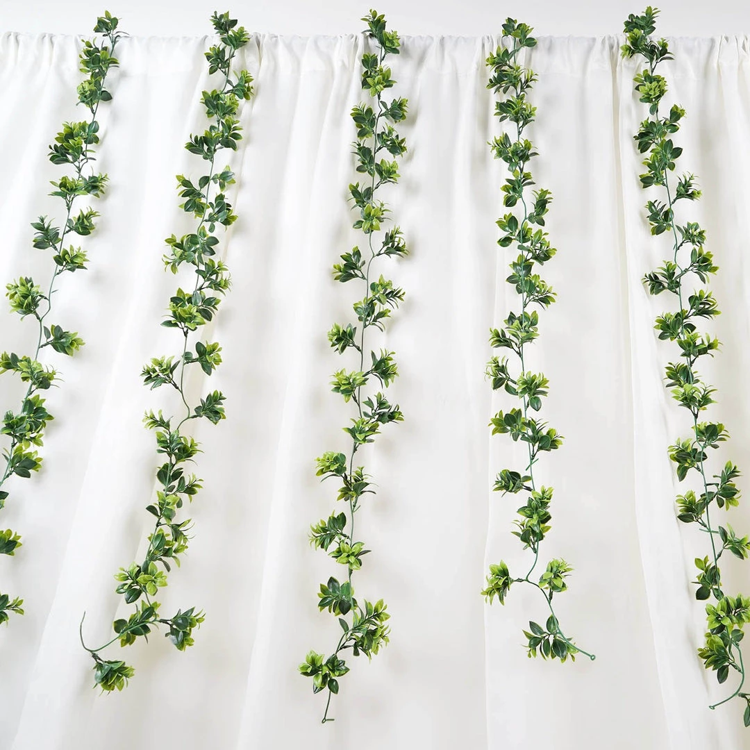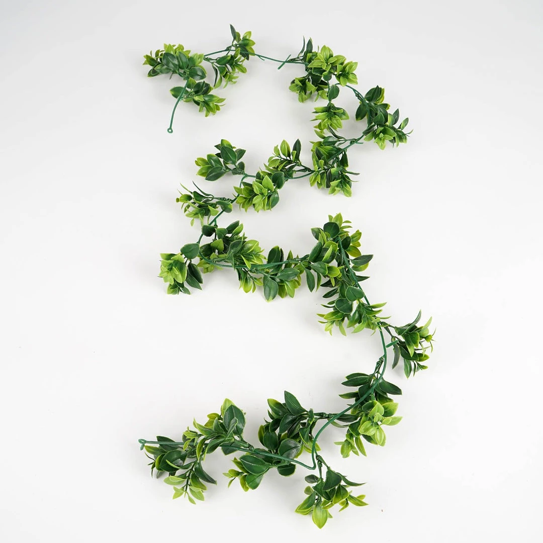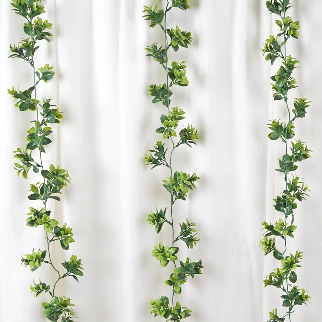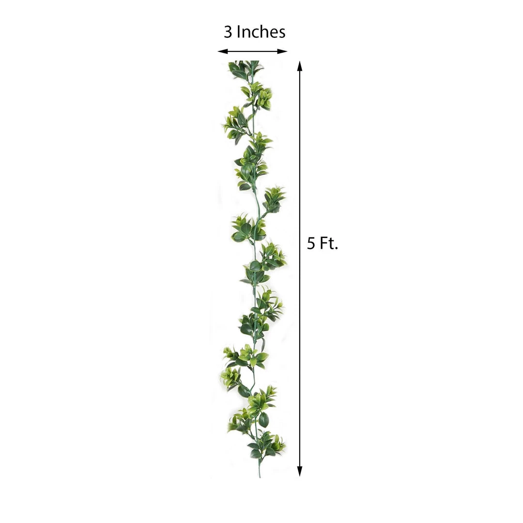 Add everlasting color and texture to your decorations and crafts with our amazing range of evergreens! Our fake greenery garlands replicate the real foliage in an extremely realistic way. Featuring detailed leaves and glossy plastic texture, the garland mimics the refreshing charm of real live plants. Fashioned in lovely shade of light and dark green, these vines will impart serene scenic beauty to your home, garden, or event’s décor. Bring a fresh, fanciful feel to your space with these extra-long leafy vines swaged over doors, wrapped around columns, hung from arches, pipe and drape canopies, gazebos and overhead frames and structures. Decorate and design like a pro by surrounding your guests entirely in luscious natural foliage by adding overhead floral chandeliers and lavish draping designs with our greenery and floral garlands suspending enticingly. Create a forest or jungle theme ambiance by simply hanging multiple vines at the entrance to your party and make your guests feel the tranquil festive energy the moment they arrive. Besides being realistic to touch and visually appealing, our faux greenery garlands are flexible enough to be used in myriads of ways; wrap it around wedding arch or trellis, make stunning table centerpieces by laying it atop fairy string lights, winding around flameless LED candles, or dangling from our vintage planters, pots, and vases, making lovely Christmas decorations on mantelpieces, or adding these to your flower displays and bouquets. Being almost 62″ long, you can even cut these into smaller sections for your DIY craft projects or to decorate wreaths and Christmas tree.