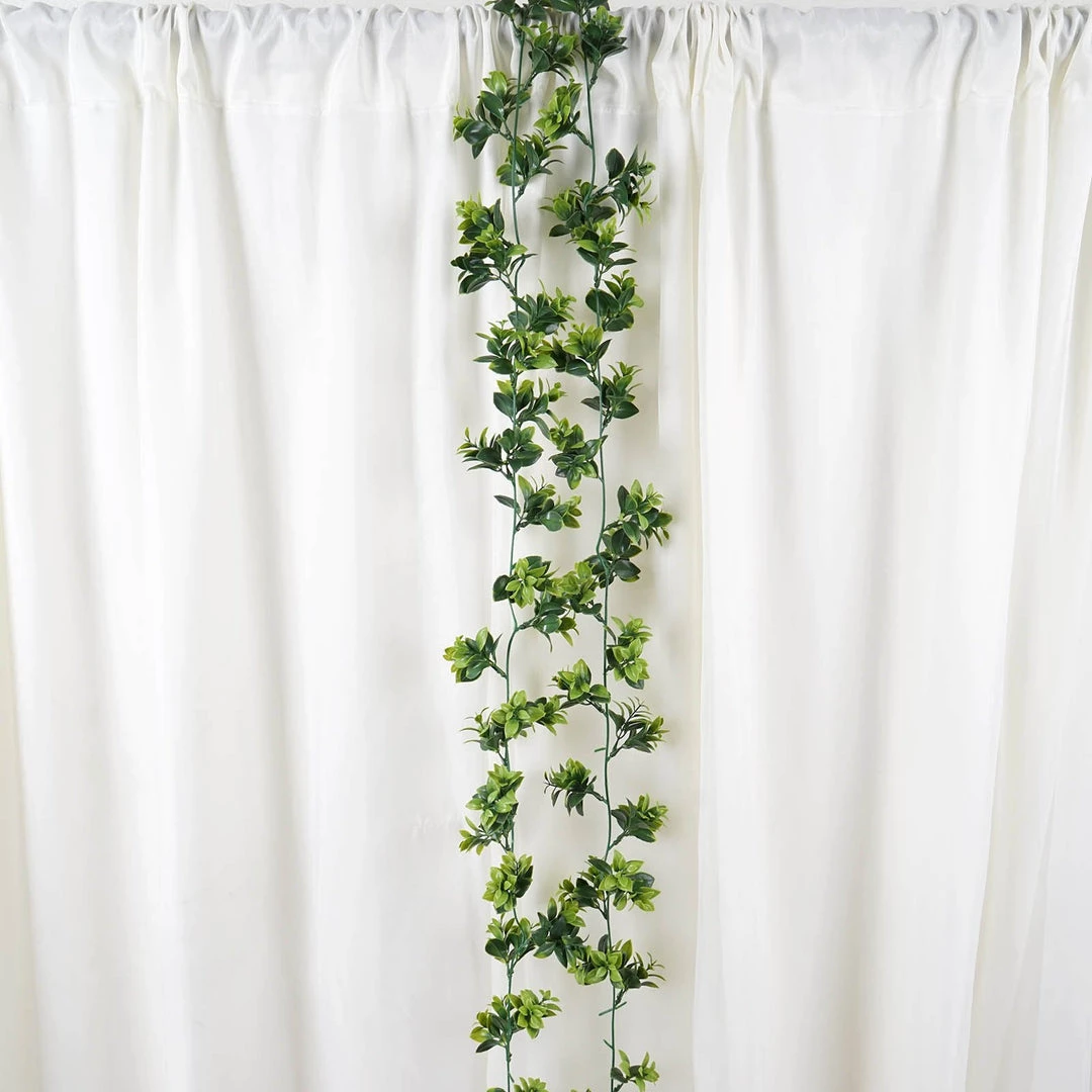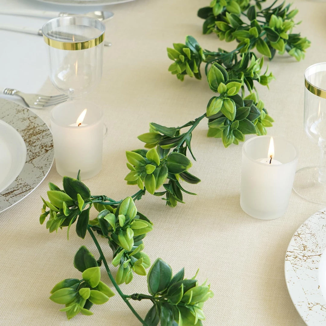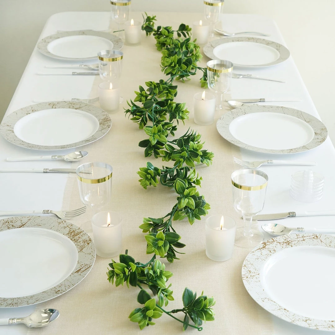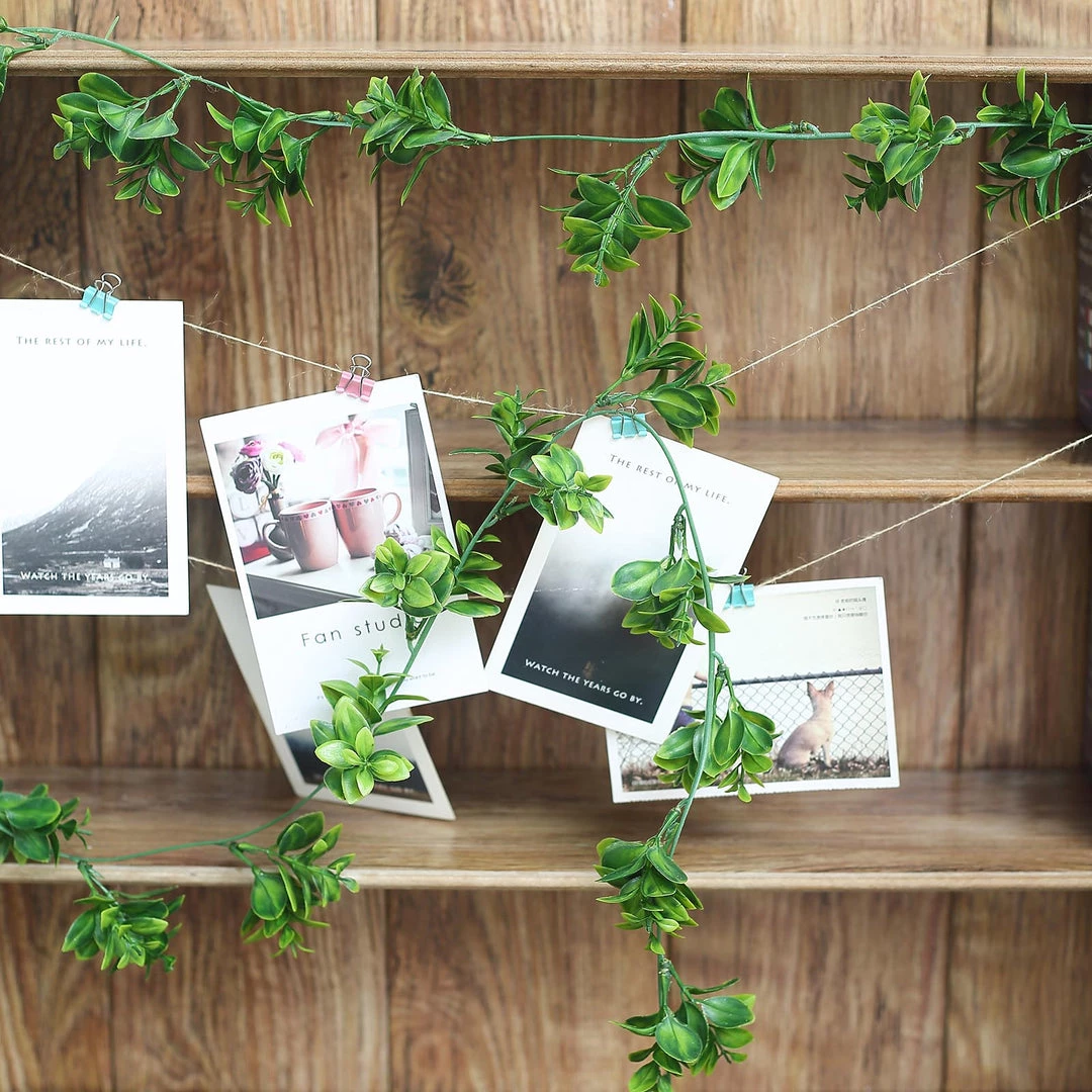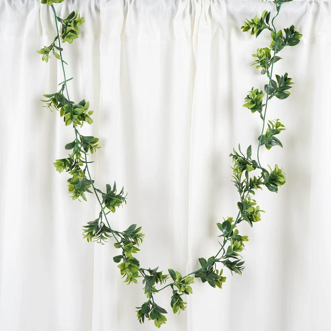 Add everlasting color and texture to your decorations and crafts with our amazing range of evergreens! Our fake greenery garlands replicate the real foliage in an extremely realistic way. Featuring detailed leaves and glossy plastic texture, the garland mimics the refreshing charm of real live plants. Fashioned in lovely shade of light and dark green, these vines will impart serene scenic beauty to your home, garden, or event’s décor. Bring a fresh, fanciful feel to your space with these extra-long leafy vines swaged over doors, wrapped around columns, hung from arches, pipe and drape canopies, gazebos and overhead frames and structures. Decorate and design like a pro by surrounding your guests entirely in luscious natural foliage by adding overhead floral chandeliers and lavish draping designs with our greenery and floral garlands suspending enticingly. Create a forest or jungle theme ambiance by simply hanging multiple vines at the entrance to your party and make your guests feel the tranquil festive energy the moment they arrive. Besides being realistic to touch and visually appealing, our faux greenery garlands are flexible enough to be used in myriads of ways; wrap it around wedding arch or trellis, make stunning table centerpieces by laying it atop fairy string lights, winding around flameless LED candles, or dangling from our vintage planters, pots, and vases, making lovely Christmas decorations on mantelpieces, or adding these to your flower displays and bouquets. Being almost 62″ long, you can even cut these into smaller sections for your DIY craft projects or to decorate wreaths and Christmas tree.