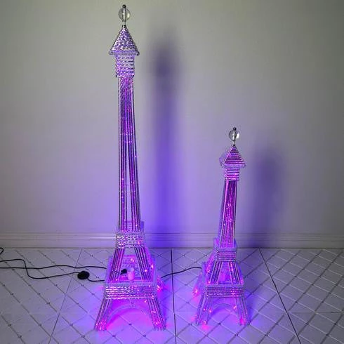 Bring a chic French twist to your home or party decorations with this bedazzling LED Eiffel Tower Decorative Light Centerpiece. This miniature Eiffel Tower will light up your decor colorfully by emitting a combination of multicolored dreamy lights. This stunning color changing LED Eiffel Tower centerpiece is accessorized with cool LED bulbs radiating alluring blends of romantic lights, making it an enchanting table top centerpiece with its stunning color changing effects and light flashing attribute. This light up miniature Eiffel Tower souvenir with build in multicolor LED lights is an extravagant accessory to creatively spruce up your special event or home decor. This mesmeric light tower will look absolutely majestic and is quite cost-effective. The sturdy metal frame makes it a durable decorative item to last for a long time. These beautiful replicas of the Monumental Eiffel Tower will bring a chic French twist to your special event, with amazingly realistic and highly detailed structures and a pure French appeal. Our Led Light changing Eiffel Tower is an ideal choice for centerpieces, home decor, party decoration, wedding adornment, cake topper, table piece, night lights, DIY craft, or any other quixotic place. Picture perfect choice for a Paris theme party, Quinceanera party, baby shower, bridal shower, corporate dinners, weddings, and a lot more.
