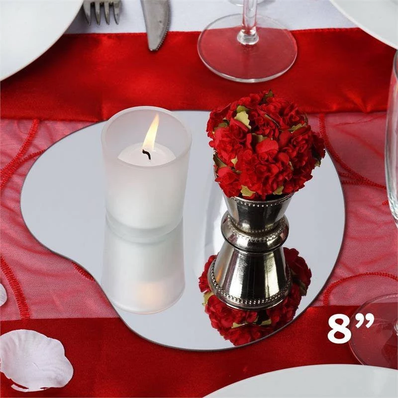 Mirrors are mesmeric, they reflect lights and create enchanting silhouettes flashing and dancing all around. Mirrors have always been preferred for decorations, centerpieces, and craft projects. Our uniquely shaped and stylishly crafted mirrors will act as instant attention-grabbers. Either placed atop your reception tables in conjunction with our Eiffel Tower Vases, or with attractive Floating Candle Bowls, these mirrors are sure to add a surreally elegant touch to your celebration. Our Lovely Heart Mirrors will signify the romantic bonding of hearts in an eternal commitment. Perfect for any heart-theme party, these heart shaped mirrors will exude heaps of exotic shimmer. Pair these with our other heart-theme accessories to add an ethereal touch to your celebrations.