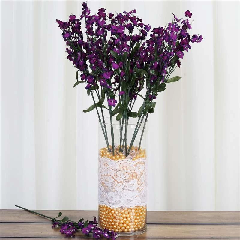 Bring color and elegance to your otherwise lackluster and plain crafts and decorations with undying floral accessories and decorations that look amazingly realistic with this silk Baby breath bush. Lush green silk leaves are beautifully adorned with delicate silk baby breath blooms. Decorate plain poles, flower pots, and arches, or adorn your vases, jars, centerpieces, bouquets, and other floral decorations.