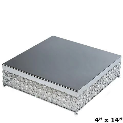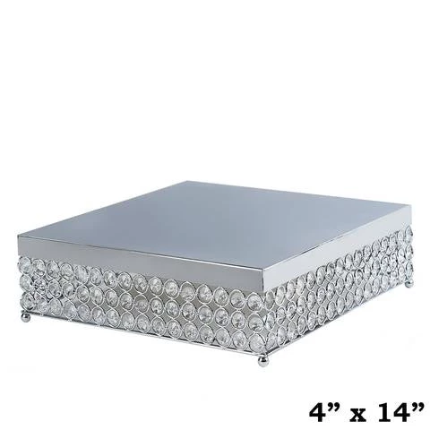 The modish square shape coupled with the twinkling crystals and glistening silver finish, make this deluxe cake stand an exotic accessory to glam any modern themed occasion up. For a dazzling display, surround this bling cake stand with our crystal chandelier candle holders or mirrored vases and coordinate with other crystal adorned table collection. This glimmering gemmed cake stand consists of three rows of twinkling crystal beading around the edges and attractive silver ball feet for added regal feel.