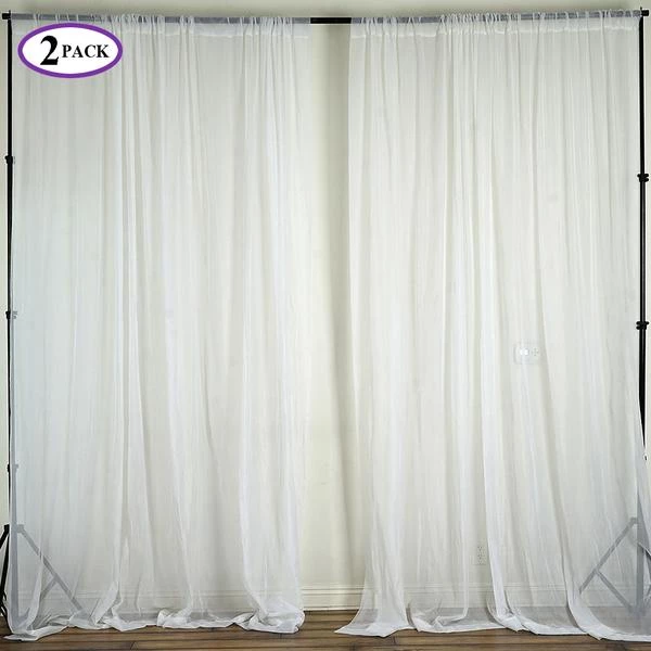 Sheer, stylish, and extremely elegant; this sheer Voil curtain panel can be hung by itself to add charm to any place or can be coordinated with additional panels for a luxurious layered effect. Hang these delicate curtain panels from any standard size curtain rod and see how the flawless sheerness of soft Voil material coupled with lush cascading layers add an ethereal touch of elegance to your home or party space. These voguish Voil curtain panels offer airy ambiance and translucent beauty while softly filtering outside light and maintaining subtle secrecy. These gorgeous curtain panels create symmetrical balance with beautifully flowing layers of delicate Voil fabric that hang enchantingly to the floor. For a perfectly exotic feel, pull back the sides of the panels with ornate ascots or lovely ribbons, or add a stylish pelmet with dangling trims. These comely curtain panels make a perfect decorative accent for almost any room and any place that calls for an added touch of sophistication!