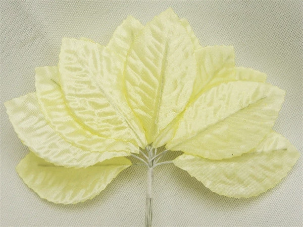 Create beautiful corsages and handsome buttonholes just like a professional florist with our silky soft satin leaves. Let your burning passions of festivity and jubilancy be reflected through these shiny, silk leaves adorning and accenting your wedding floral arrangements, boutonnieres, carnations, corsages, gifts, favors, package ornamentation and more. The stunning detailed finishing of these handcrafted satin leaves make them look amazingly life-like, thus imparting an air of fresh growth and life into whatever you adorn these with. Each leaf has an attached bendable stem that runs the entire length of the leaf, allowing you to be able to bend and shape the leaf for the desired effect.