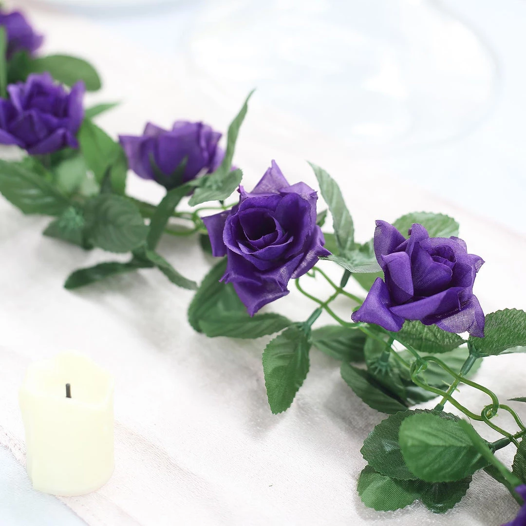Add blooming colors and festive glee to your home interiors, backdrops, aisles, and arches with our splendid rose chain garland selection that offers your favorite blossom in the color of your choice. Transform lackluster tablescapes, banisters, poles, or walls into extravagant display of radiant jubilancy with these faux rose garlands. Revitalizing green color contrasted with vibrant silk rose hues and delicate baby breath accents make these garlands true source of lively merriment. Crafted with intricate artistry, this rose chain garland mimics the fresh natural luster and attraction of real leaves and roses. Faux leaves have surprising finishing details and gloss, while the prettily strung roses and baby breaths will leave the spectator awestruck at such life-like dexterity. Well concealed hooks allow you to adjust the garland your way. These gorgeous garlands will never wilt and lose their charismatic appeal and color, they can be reused and stored easily, giving you a perfect decorative accessory to create the magical realm of your dreams anytime, anywhere!