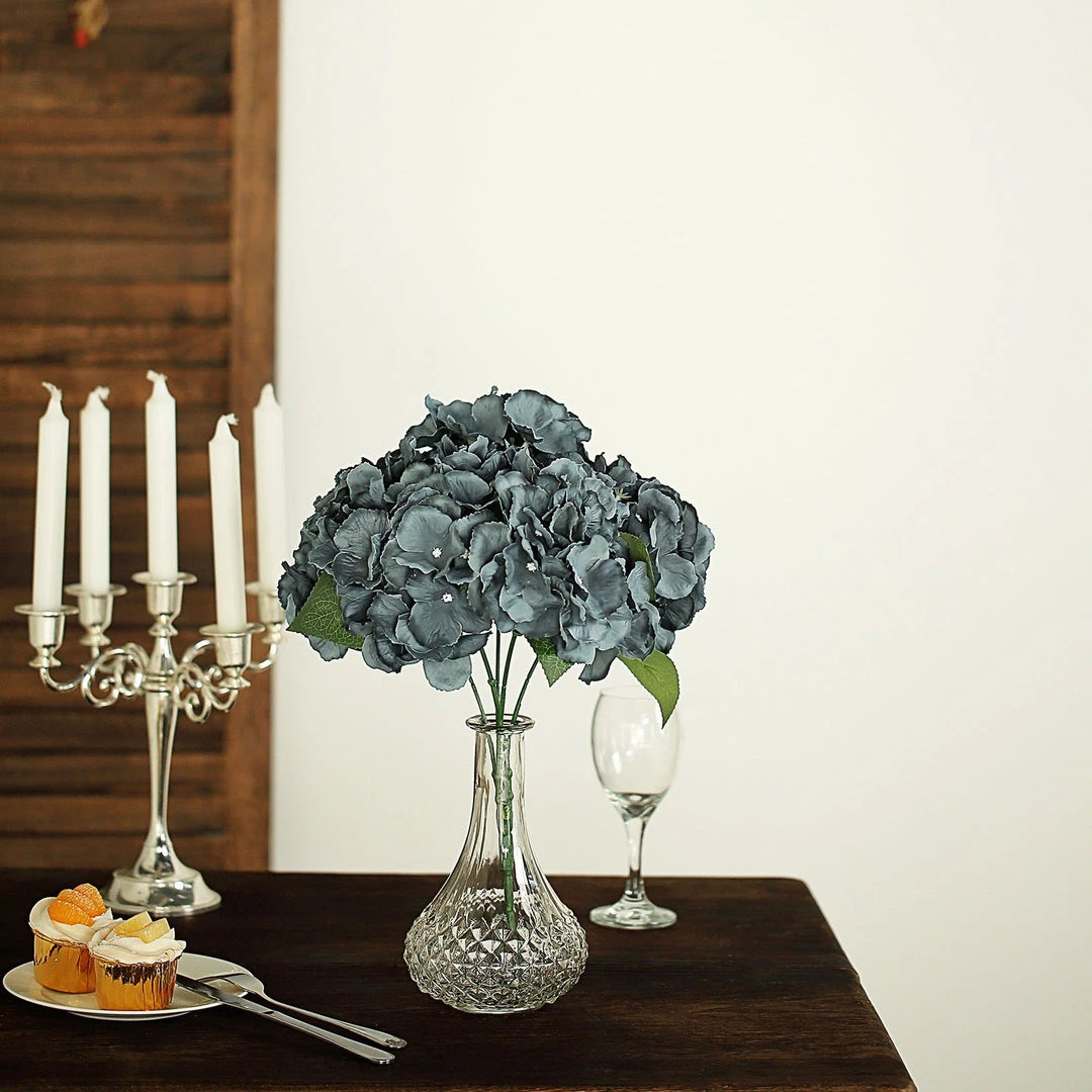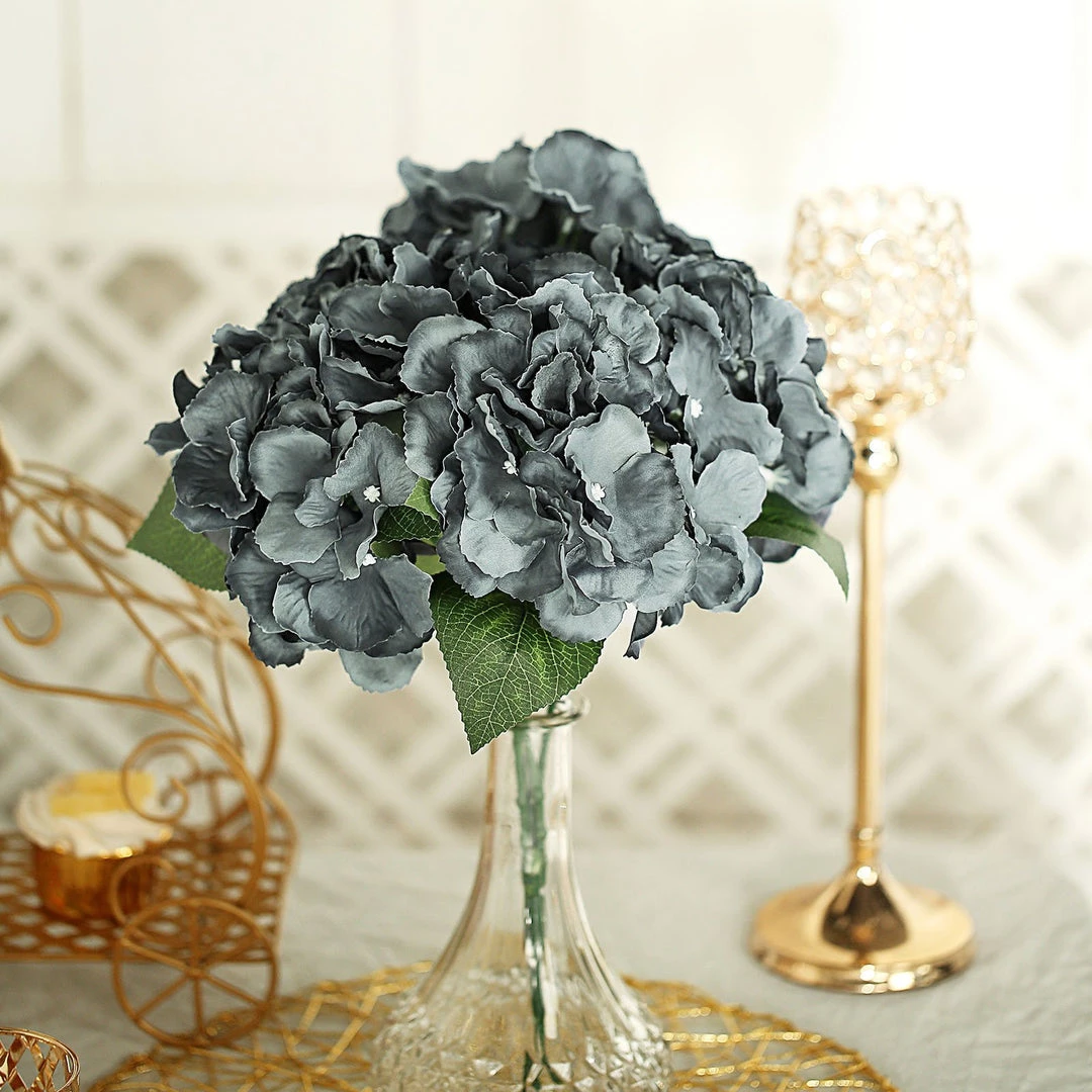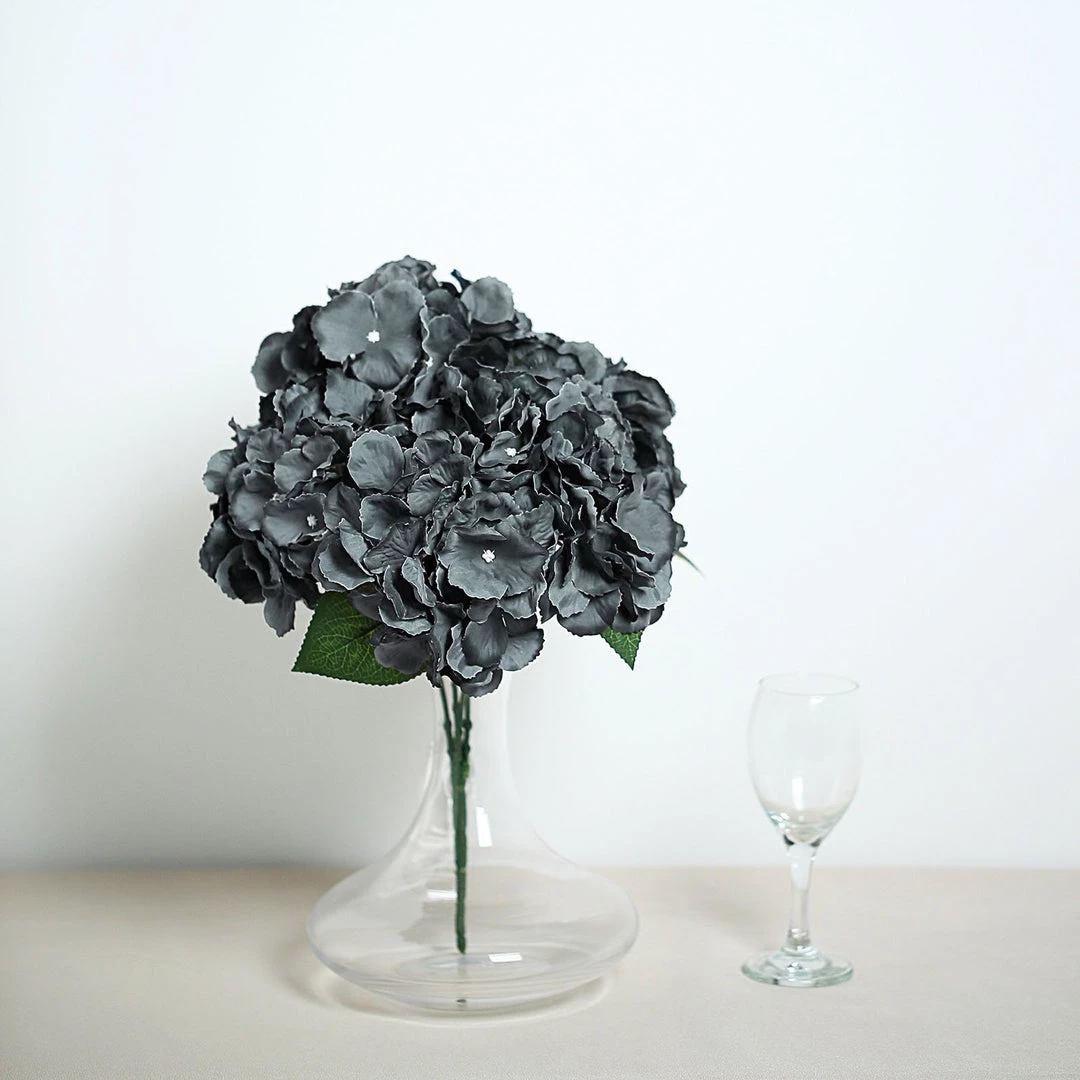 Artificial Hydrangea Silk Fully Bloomed Flower Bushes Wedding Floral Vase Decoration- Charcoal Gray: