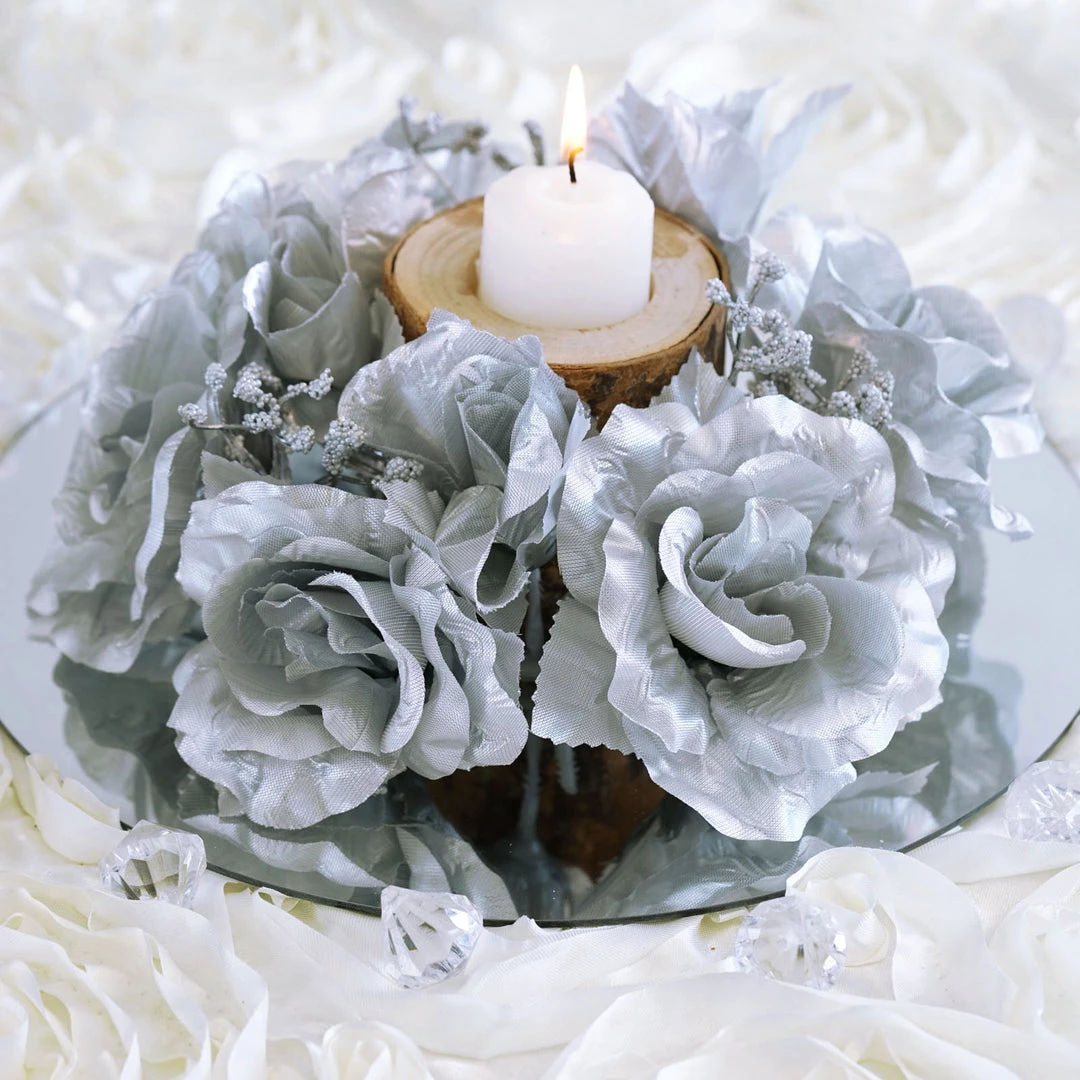 Our candle ring is perfect if you are looking for something to spice up your candle centerpieces. They are made up of silk roses which will encircles your candles wonderfully. This is a cost-effective way to brighten up your centerpieces without detracting from the rest of the decorations. With our huge list of colors to choose from, you can’t go wrong.