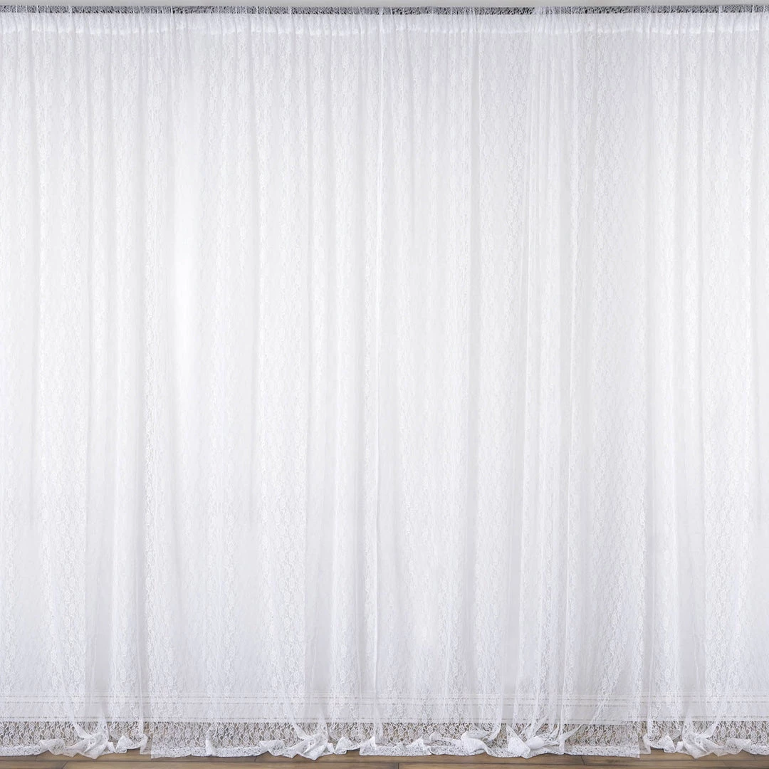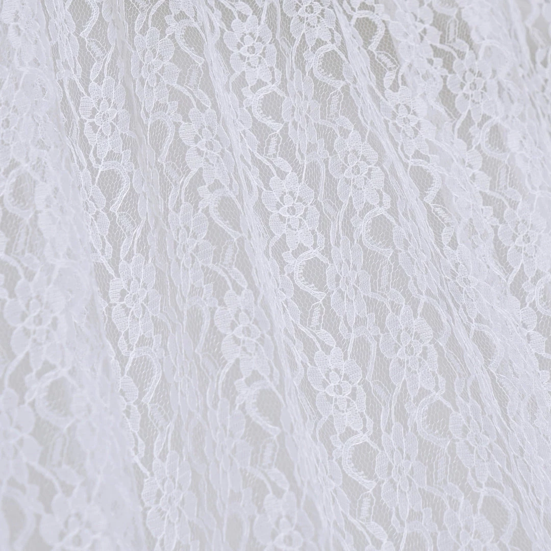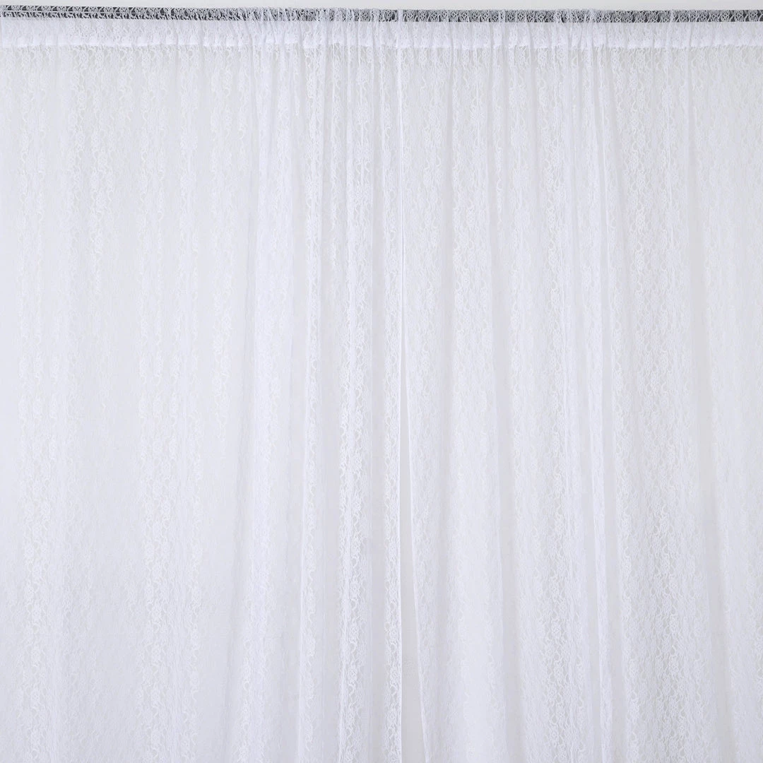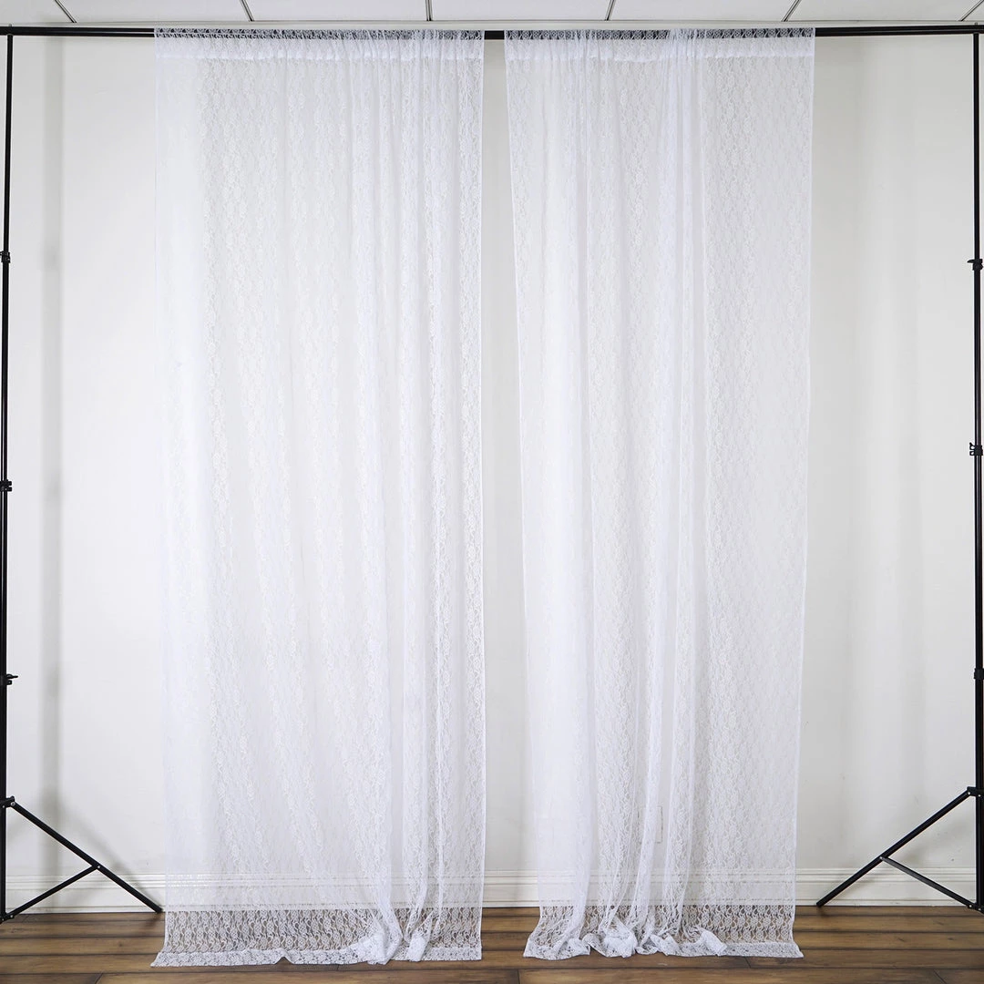 Sheer, stylish, and extremely elegant; this sheer Lace curtain panel can be hung by itself to add charm to any place or can be coordinated with additional panels for a luxurious layered effect. Hang these delicate curtain panels from any standard size curtain rod and see how the flawless sheerness of soft Lace material coupled with lush cascading layers add an ethereal touch of elegance to your home or party space. These voguish Lace curtain panels offer airy ambiance and translucent beauty while softly filtering outside light and maintaining subtle secrecy. These gorgeous curtain panels create symmetrical balance with beautifully flowing layers of delicate Lace fabric that hang enchantingly to the floor. For a perfectly exotic feel, pull back the sides of the panels with ornate ascots or lovely ribbons, or add a stylish pelmet with dangling trims. These comely curtain panels make a perfect decorative accent for almost any room and any place that calls for an added touch of sophistication!