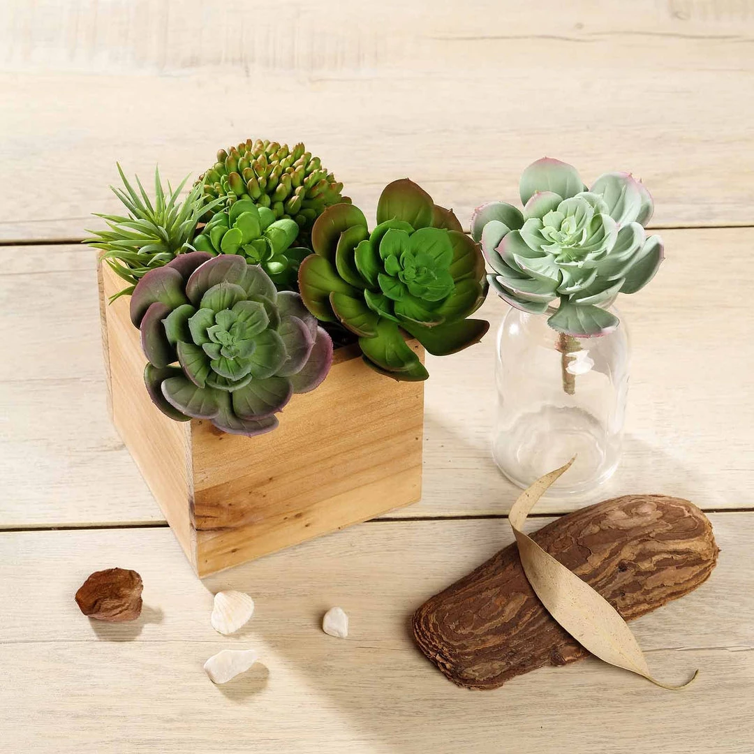 Add a dash of natural green to any space with these realistic looking faux cacti succulents. Fake miniature assorted cactus plants are perfect to display on your bookshelf, living room mantle, coffee table, dining room table, cabinet, counter, bathroom shelf, kitchen window, foyer, and any other place to bring an organic style and refreshing colors of nature. Besides home and office decoration, our everlasting faux Succulents also make an ideal decorative accent for Rustic Parties, Woodland, Southwestern, and Garden-themed Weddings and Events. Either hang from Tea Branches, or make fabulous Rustic Wedding Centerpieces, place atop your Party Tables swathed with our Burlap Tablecloths and Linens, and accentuate with our Natural Stump Candle and Card Holders, Cactus Tealight Candles, LEDs, Burlap Flowers, and other rustic-themes decorations.