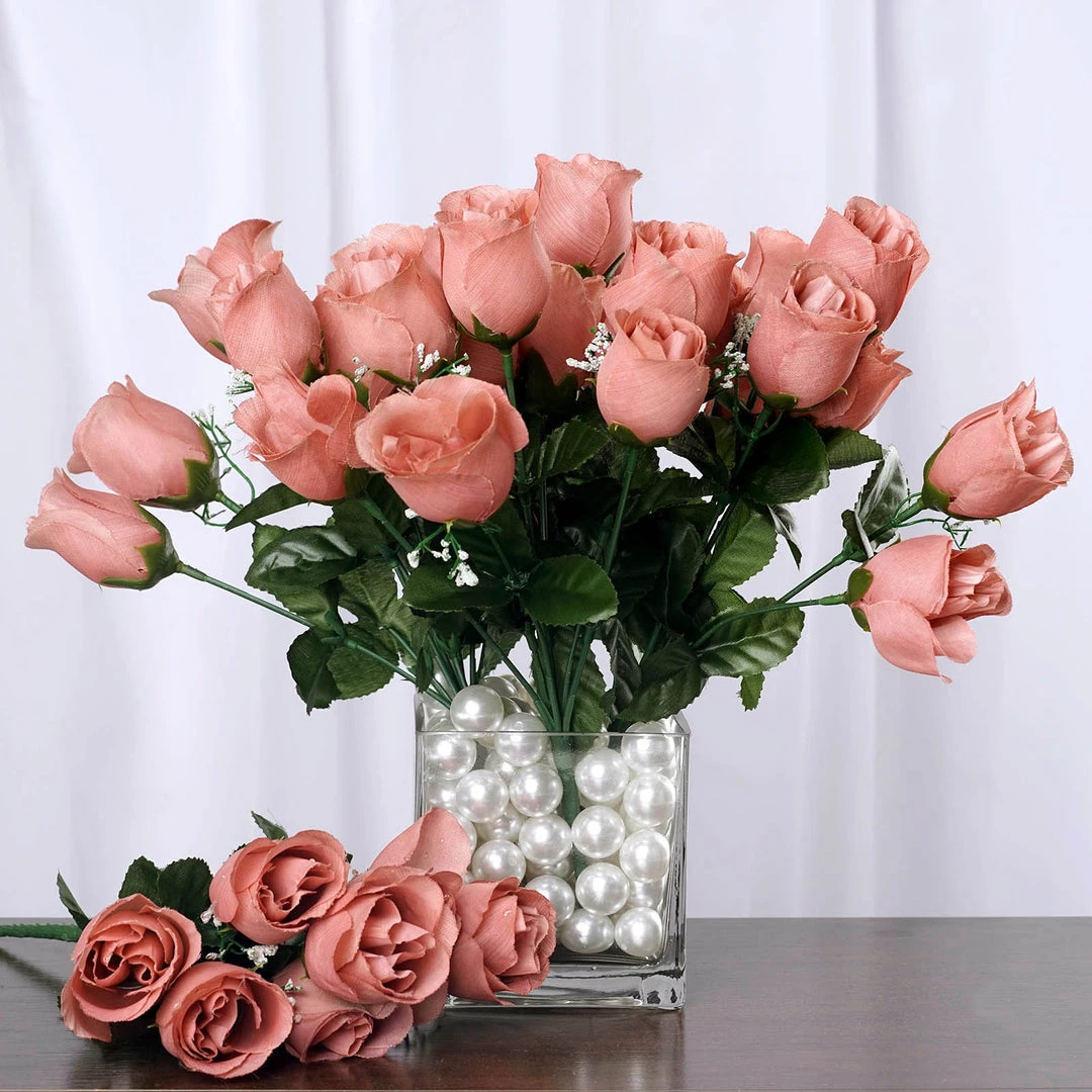 Whether you are sending these flowers for your loved ones or simply as a decoration for a special event, our collection of silk rose buds are available in a variety of colors creating the perfect gift or decorations that will last for years to come. These super-soft, realistic looking silk rose buds are bright, colorful, inexpensive and economical; a must have for any type of celebration. Each silk rose bud is supported by a stem, and beautifully accented with baby’s breath. These silk rose buds come in gracious packages, and can be used individually, or in bunches to make your decorating easy and stress free.
