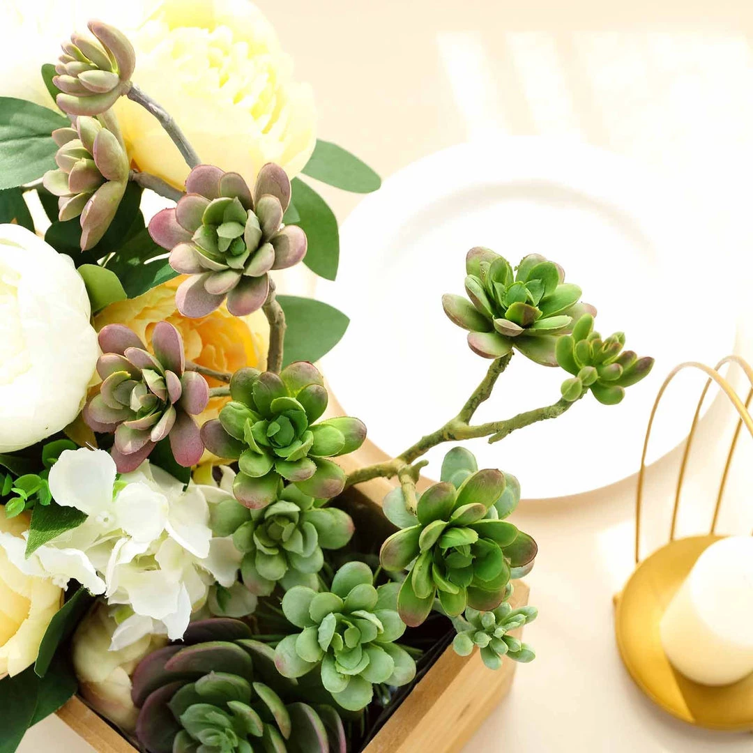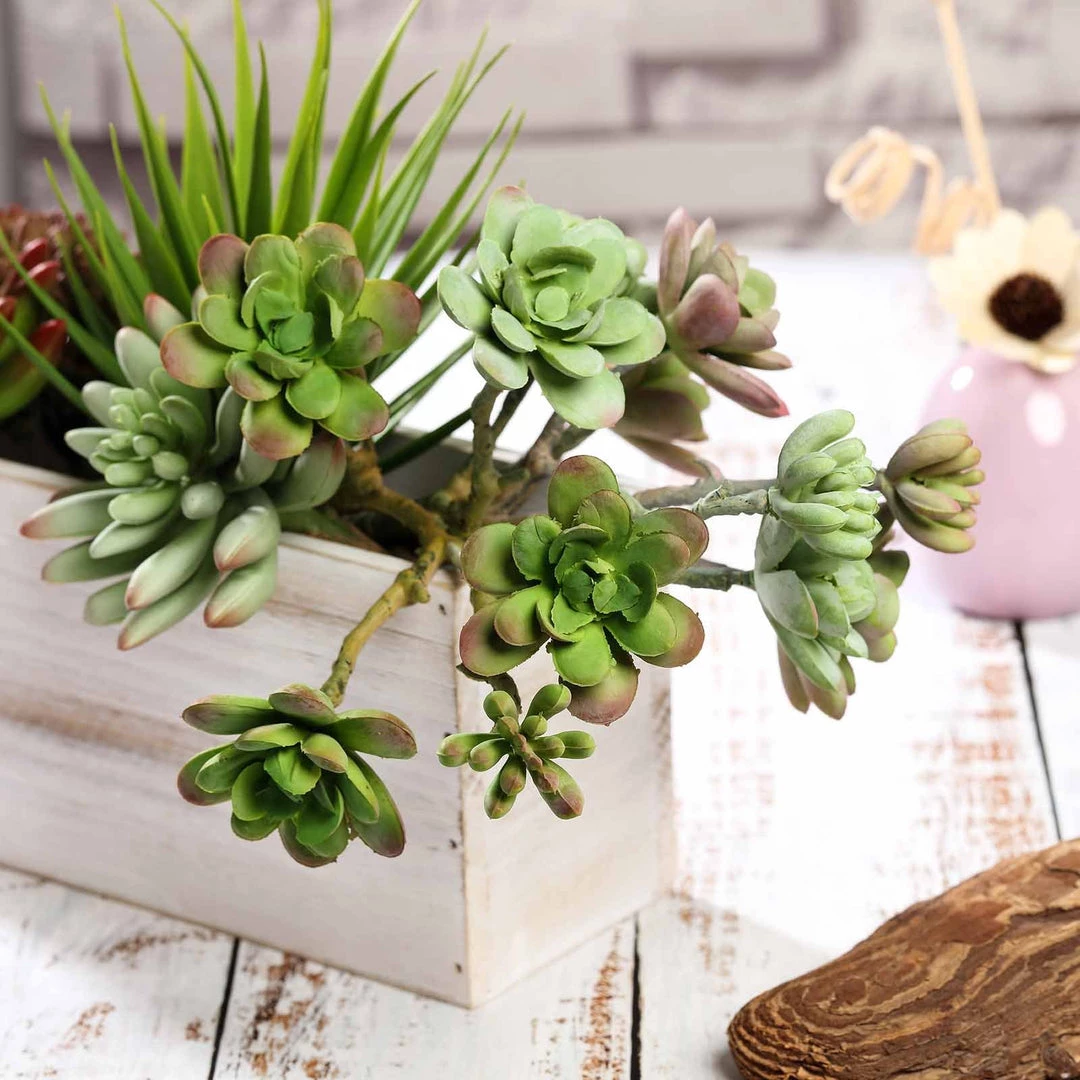 Add a dash of natural green to any space with these realistic looking faux cacti succulent picks. Fake miniature assorted cactus plants are perfect to display on your bookshelf, living room mantle, coffee table, dining room table, cabinet, counter, bathroom shelf, kitchen window, foyer, and any other place to bring an organic style and refreshing colors of nature. Besides home and office decoration, our everlasting faux Succulents also make an ideal decorative accent for Rustic Parties, Woodland, Southwestern, and Garden-themed Weddings and Events. Either fill in jars, pots and bowls to make elegant rustic tabletop centerpieces, or attach with Tree Branches, backdrops, arches, chair sashes, and napkin rings for a truly whimsical look. These loose picks can be bunched together or can be scattered on your Party Tables swathed with our Burlap Tablecloths and Linens, accentuated with our Natural Stump Candle and Card Holders, Cactus Tealight Candles, LEDs, Burlap Flowers, and other rustic-themes decorations.